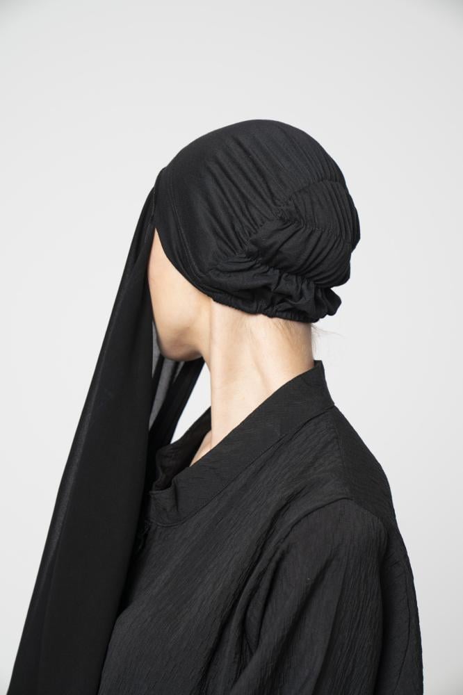 الحجاب يتكون من بندانه قطن مرن متصلة مع حجاب شيفون