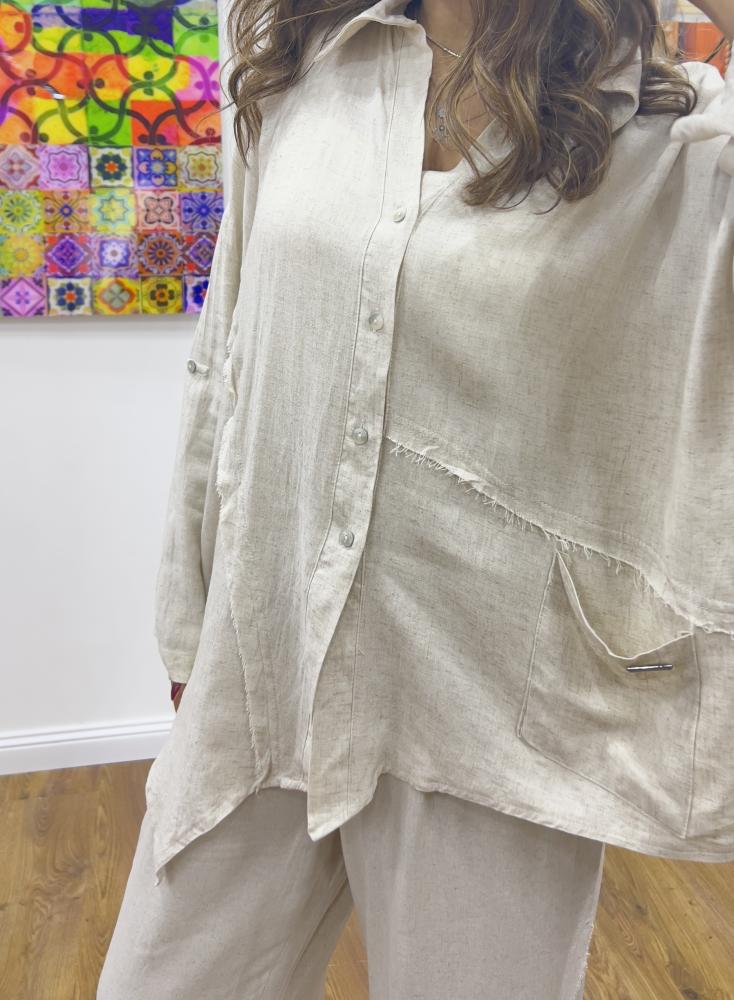 ✔ Design: Wide Shirt with Front Buttons and Elegant Side Pocket, with Wide Leg Pants