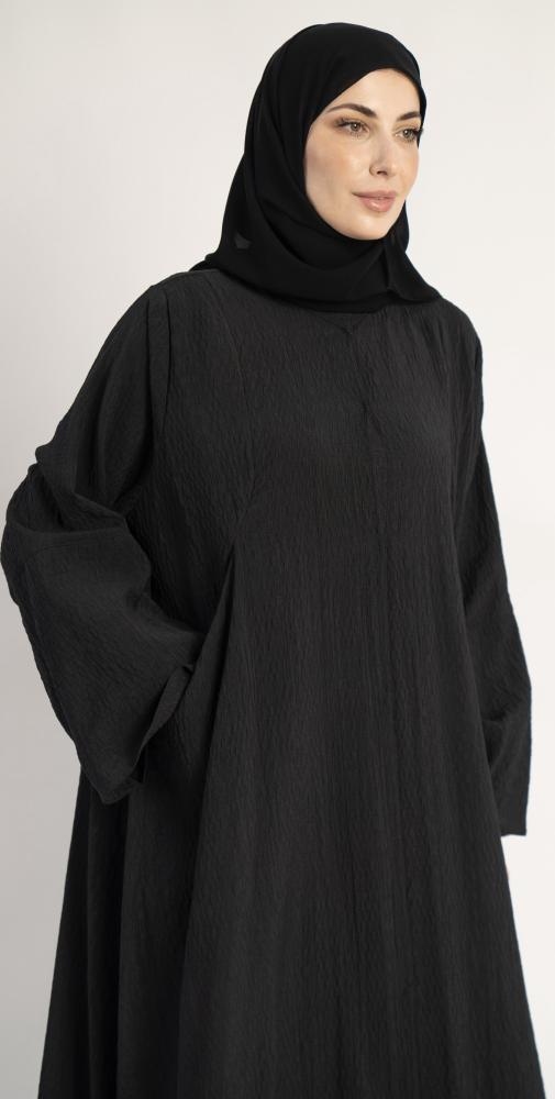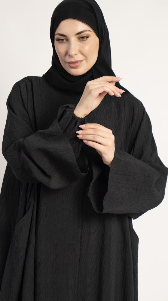 تتميز العباية بقصتها الواسعه وكم داخلي مطاطي مخفي